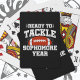 This fun sophomore year design is perfect for a high school sophomore football player or 10th grade teacher that loves to support their high school football team! Perfect for back to school, 9th grade graduation or all school year long! Features 'Ready To Tackle Sophomore Year' high school sophomore quote w/ football graphic. Great for a 10th grader or tenth grade teacher that loves to watch or play football!