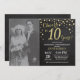 10th Wedding Anniversary with custom photo. Chalkboard Black and Gold Invitation. Tenth Wedding Anniversary. Chalkboard Black and Gold Glitter Diamond Background. Gold Confetti. Adult Birthday. Woman or Man Male Birthday Party. For further customisation, please click the "Customise it" button and use our design tool to modify this template.
