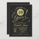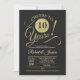 10th anniversary party Invitation with chalkboard pattern and faux glitter gold. Cheers to 10 years! Perfect for an elegant celebration.