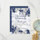 A glamourous 10th wedding anniversary thank you card. This elegant wedding anniversary thanks contains a celebration silver and blue balloon design. Fully customise the text the match your own event.
