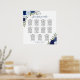 Introducing a stunning boho chic floral seating chart that will make it easy for your guests to find their tables at your wedding reception. The seating chart showcases a beautifully hand-painted watercolor design, featuring roses in a lovely blend of dusty blue, navy, and indigo hues, adorned by sprigs of garden leaves and foliage. The intricate calligraphy title adds an extra touch of sophistication. With ample space to accommodate up to 110 names at 11 tables, each seating 10 guests, the chart also includes the names of the couple and the wedding date at the bottom.
