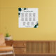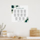 This stunning boho chic floral seating chart will make it easy for your guests to find their tables at your wedding reception. The design showcases beautifully hand-painted watercolor roses in lovely emerald green and sage hues, adorned by sprigs of garden leaves and foliage. The intricate calligraphy title adds an extra touch of sophistication. With ample space to accommodate up to 110 names at 11 tables, each seating 10 guests, the chart also includes the names of the couple and the wedding date at the bottom.