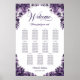 Help your guests find their table with this purple floral seating chart. It is suitable for a wedding with 11 tables and up to 110 guests.