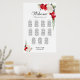 Help your guests find their table with this red and white rose floral wedding seating chart. It is suitable for a wedding with 11 tables and 110 guests.