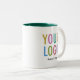 Easily personalise our ceramic two tone mug with your company logo, recipient name, or other custom text. You can reduce the cost of disposable cups and be green by giving employees their own reusable mug. Available in 11 ounce with a green inside colour. Also sold in other colours. No minimum order quantity and no setup fee.