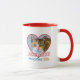 Ringer mug featuring beautiful Adelaide, one of our senior, FIV+ cats.