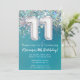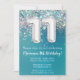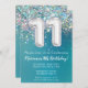 11rd Birthday Invitation Teal Silver Glitter
