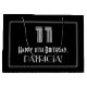 This vintage look 1920s-1930s appearance inspired birthday gift bag design features a large art deco style inspired number "11", the message "Happy 11th Birthday,", a personalised name, and a border pattern consisting of thin lines. The background is coloured black. A gift bag like this might be used when wrapping gifts being given to somebody in celebration of their 11th birthday. [~Z0000497]