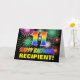 The front of this cheerful, colourful, and fun birthday themed greeting card design features a large number "11" and the message "HAPPY BIRTHDAY,", both having a rainbow spectrum gradient inspired pattern colouring, along with a bold yellow editable recipient name. The front also features a multicolored background pattern inspired by the appearance of bursting celebratory fireworks. The inside features a customised birthday greeting message, or could perhaps be cleared and left blank if a message is to be written by hand instead. A colourful personalised birthday card like this might be a fun way to celebrate somebody’s eleventh birthday. [~Z0000471]