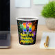 This colourful and exciting birthday paper cup design features a large number “11” having a rainbow spectrum gradient inspired pattern. It also features the message “Happy 11th Birthday,”, and a personalised name. The background features a vibrant and colourful pattern inspired by bursting celebratory fireworks. Colourful, vibrant paper cups like this might be fun to have at a birthday celebration being held in celebration of somebody’s eleventh birthday. [~Z0000539]