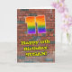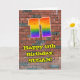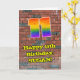 This vibrant and exciting urban graffiti and street art inspired birthday greeting card design features a large number “11” having a colourful rainbow spectrum gradient inspired pattern. It also features the message “Happy 11th Birthday,”, and an editable name. The background of the front features a brick wall pattern. The inside features a customisable birthday greeting message, or could perhaps be cleared and left blank if a message is to be written by hand instead. A colourful, customisable birthday greeting card like this might be used to acknowledge somebody’s eleventh birthday. [~Z0000586]
