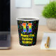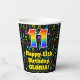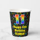 This joyful and cheerful music themed birthday paper cup design features a large number “11” with a rainbow spectrum gradient inspired pattern, along with the message “Happy 11th Birthday,”, and an editable name. The background features a colourful music notes and symbols pattern. Vibrant, colourful paper cups like this might be fun to have at a birthday party being held in celebration of somebody’s 11th birthday. [~Z0000541]
