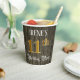 This elegant and opulent birthday-themed paper cup design features an editable name and the message “11th Birthday Party”. The large number “11th” has an imitation/faux gold-inspired coloring pattern, the words “Birthday Party” are in fancy script-style text, and the background features an imitation/faux woodgrain-inspired look. Luxurious, ornate paper cups like this might be useful at a birthday celebration/party being held in celebration of somebody’s eleventh birthday. [~Z0000568]