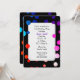 Neon rainbow dot pattern on black background for an 11th birthday party invite.