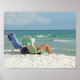 11x14 print watercolor painting showing a woman reading a book in a beach chair as the waves roll in on the shore.
