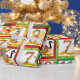 This adorable Christmas wrapping paper features 1 partridge in a pear tree, 2 turtle doves, 3 french hens, 4 calling birds, 5 golden rings, 6 geese a laying, 7 swans swimming, 8 maids milking, 9 ladies dancing, 10 lords leaping, 11 pipers piping and 12 drummers drumming each in a decorative frame. Perfect for wrapping those holiday gifts.