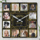12 Family Photo Collage Black Gold Marble Custom Square Wall Clock