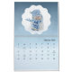 This calendar features an adorable snowman on each page with scenery behind the calendar grid.