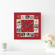 12 Photo Collage Create Your Own Gold Red Square Wall Clock