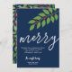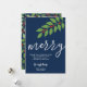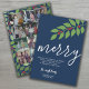 12 Photo Collage - Merry Script - Navy Botanical Holiday Card