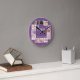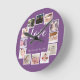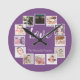 12 Photo Collage Personalized Purple Round Clock