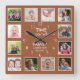 12 Photo Collage Time With Family Quote Terracotta Square Wall Clock