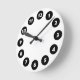 A stylish clock face with the numbers placed inside circular colour spots in each hour position. Also available in other colours.