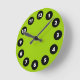 A stylish clock face with the numbers placed inside circular colour spots in each hour position. Also available in other colours.