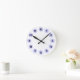 A stylish clock face with the numbers placed inside circular colour spots in each hour position. Also available in other colours.