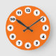 A stylish clock face with the numbers placed inside circular colour spots in each hour position. Also available in other colours.