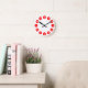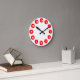 A stylish clock face with the numbers placed inside circular colour spots in each hour position. Also available in other colours.