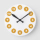 A stylish clock face with the numbers placed inside circular color spots in each hour position. Also available in other colors.