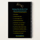 This convenient journal features a beautiful original image on the cover of a flock of birds flying above some trees behind a black & gold barred window w/a gold label "PROGRESS NOT PERFECTION." On the back is a list of motivational sobriety quotes you can keep, personalise or clear.