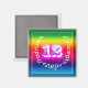 Magnet with 12 in centre with words Steps Concepts and Traditions on a rainbow colour background  It is artistically created.