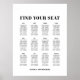 Simple Elegant Wedding Reception Find Your Seat. Seating chart for 12 tables (120 guests). A minimalist design in black and white or any background colour you choose. Just click the customise further link, shown under the text personalisation area on the right, and choose your custom colour background. This sign poster template makes it fast and easy to create stunning additions to your wedding décor. Signs can be enlarged, there are many sizes to choose from, as well as options for custom framing and matting.