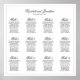 This simple 12 table wedding seating chart will add beauty, style, and grace to your reception while making it easy for your guests to find their tables. The black and white design is features a timeless classic style with fancy script lettering for both the couple's names and table numbers. The chart has space for up to 120 guests with the traditional 10 seats per table. Perfect way to welcome your guests and add an air of sophistication and class to your special day!