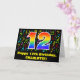 This fun, vibrant, and colorful birthday greeting card design features a large number "12" with a rainbow spectrum gradient inspired pattern, along with the message "Happy 12th Birthday,", and a personalized recipient name. The front also has a pattern of various music notes and symbols having a variety of colors and sizes. The inside features an editable birthday greeting message, or could perhaps be cleared and left blank if a message is to be written by hand instead. A customized birthday greeting card like this might be a fun way to send a birthday greeting message to a singer, a musician, a music composer, or somebody else who is celebrating their twelfth birthday. [~Z0000426]