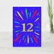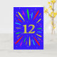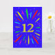An explosive 12th birthday card! What a wonderful way to send birthday greetings. The number 12 in bright yellow with an explosion of bright colours and stars.