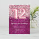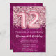 12th Birthday Invitation Girl Magenta Pink Glitter