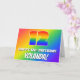 The front of this cheerful and joyful birthday themed greeting card design features a large number “12” with a multicolored rainbow spectrum inspired gradient pattern, along with the message “HAPPY 12th BIRTHDAY,”, and a personalised recipient name. The background of the front also has an upbeat rainbow spectrum gradient pattern. The inside features a customisable birthday greeting message, or could perhaps be cleared and left blank if a message is to be written by hand instead. A vibrant, customisable birthday greeting card like this might be a fun way to send a birthday greeting message to somebody who is celebrating their twelfth birthday. [~Z0000585]