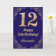 12th Birthday Navy Blue and Gold Glitter Frame Card