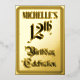 The front of this ornate twelfth birthday party foil announcement/invitation design features the message “12th Birthday Celebration” in opulent script-style text. It also features a custom name. The back features personalised details about the event, such as the date, time, place, and any other important information. Luxurious, opulent, customised invitations like these might be used to invite guests to a birthday celebration/party being held to honour somebody’s 12th birthday. [~Z0000596]