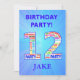 12th Birthday party invitation. Add a name and your details to make a fantastic birthday party invitation. The numbers are made from words connected with birthdays to get everyone in the mood!