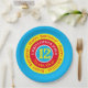 Child's Paper birthday party plates for a 12th Birthday. Birthday party plates with an inscription. Saying a repeated "Happy Birthday". To Celebrate a birthday. Also the name of the child whose birthday it is.