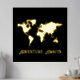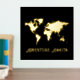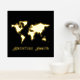 This real gold foil poster art features a map of the world and a text template that reads adventure awaits. You can edit the text and change the image as desired. Ideal for someone who loves to travel and has an adventurous nature.