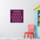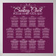 This seating chart shows wedding reception seating assignments for 130 guests at 13 tables. The design is simple, elegant and sophisticated with script lettering, white text, a vintage floral filigree in a silver faux foil colour, and a cassis or magenta purple background.
