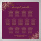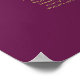 This beautiful 13 table wedding seating chart includes table assignments for 130 guests with 10 seats per table. The design features gold text on a magenta or cassis purple coloured background with a lacy script calligraphy title. The corners are decorated with a frilly faux foil filigree with curls and swirls making it both simple and elegant. Stylish, chic and sophisticated way to help your guests find their seats at your reception.