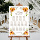 This sunflower and rose floral seating chart will help your guests find their table. It is suitable for a wedding with 13 tables and up to 130 guests.