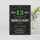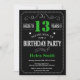 13th Birthday Black and Green Chalkboard Invitation