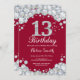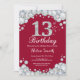 13th Birthday Burgundy Red and Silver Diamond Invitation